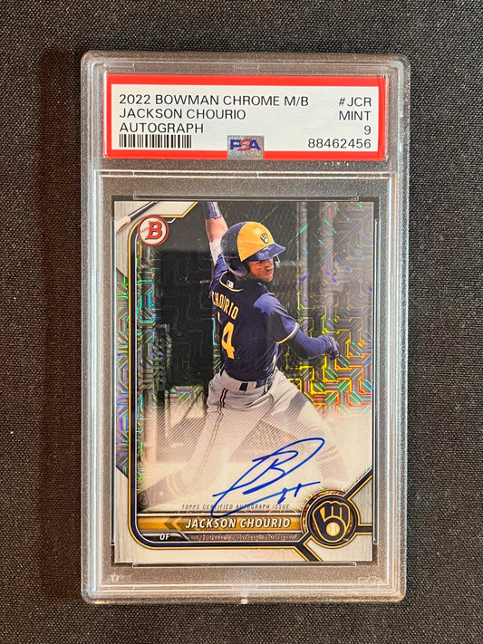2022 Bowman Chrome Mega Jackson Chourio Mojo Refractor Auto PSA 9
