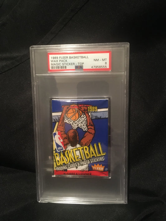 1989 Fleer Basketball Graded Wax Pack PSA 8 - Magic Johnson Sticker on Top
