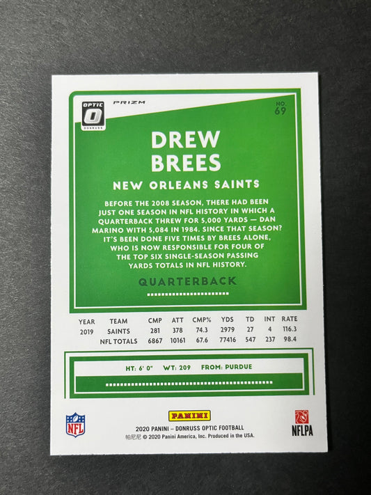 2020 Panini Donruss Optic Silver Holo Football Drew Brees #69