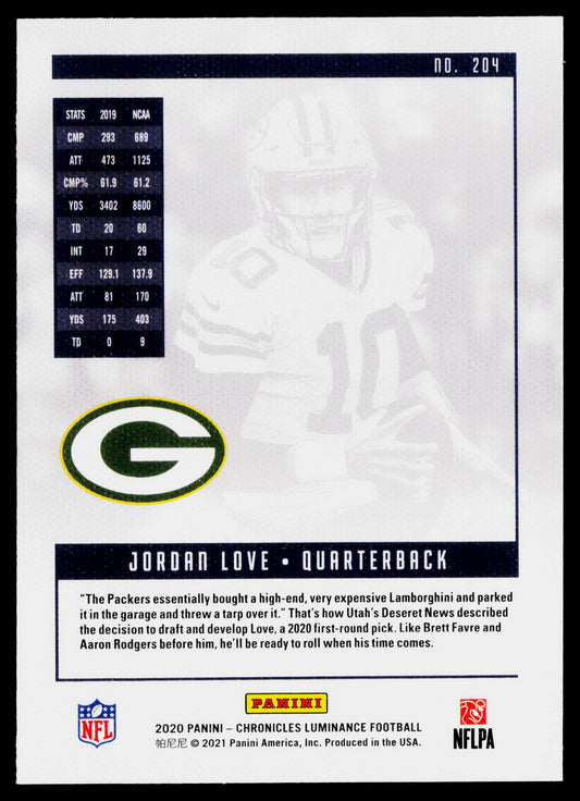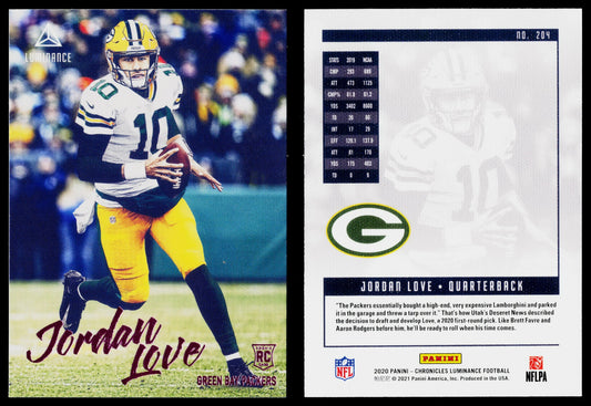 2x 2020 Panini Chronicles Luminance Jordan Love Rookie Card 204 QTY 2 cards!