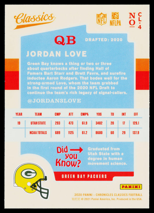 2020 Panini Chronicles Classics Jordan Love Rookie #CL-4 RC