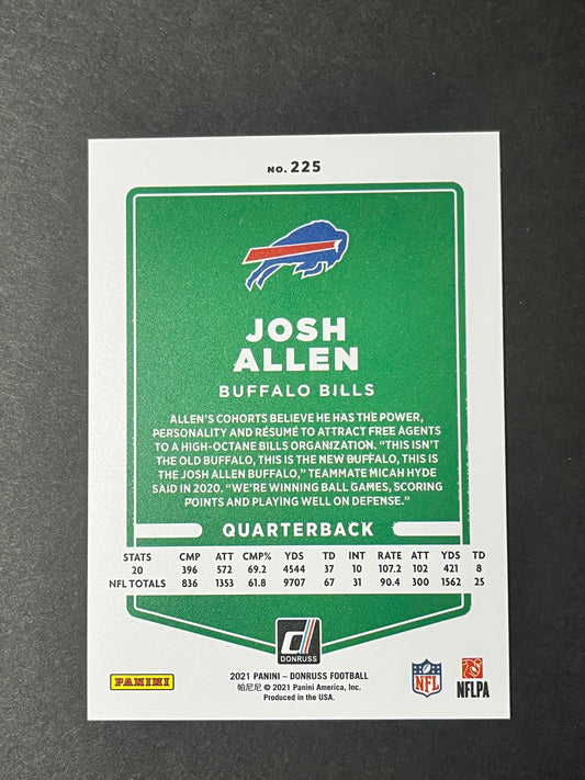 2021 Donruss Football #225 Josh Allen Red Press Proof No Helmet Variation