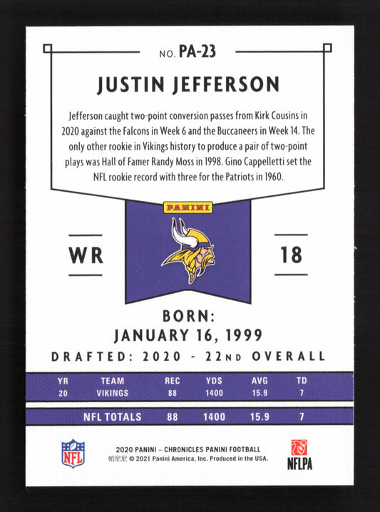 4x 2020 Panini Chronicles - Panini #PA-23 Justin Jefferson (RC) QTY4