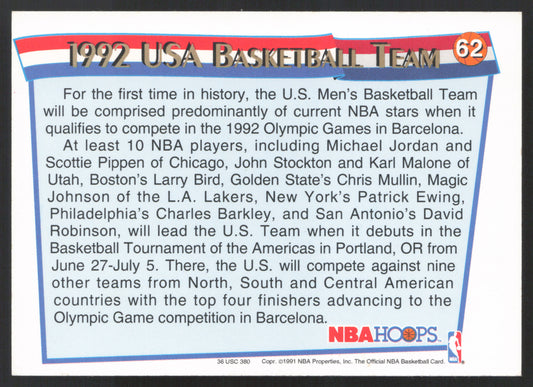 1992 USA Basketball Dream Team NBA Hoops 1991 Card #62 Michael Jordan Magic Bird